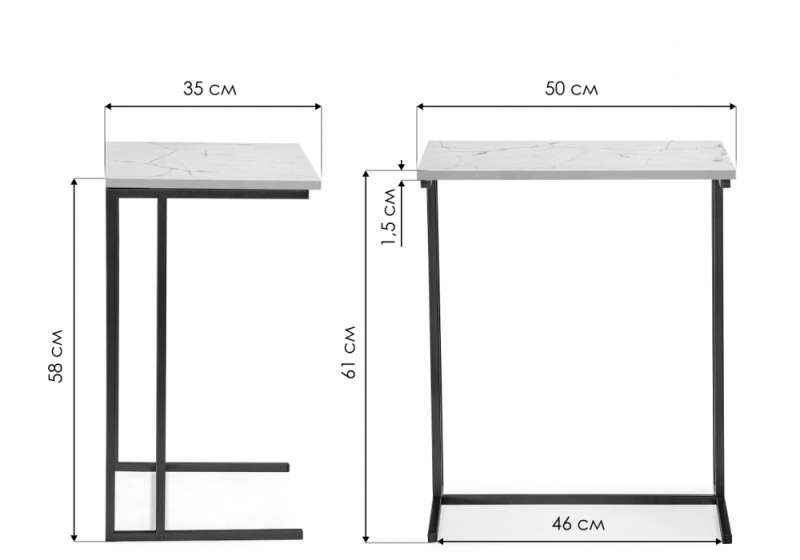 Высота до подстолья - 58 см. Расстояние между ножками - 46 см.